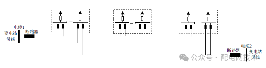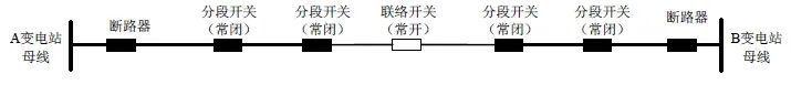 自变电站母线引出,配有多个分段开关,并与多回线路联络的架空线路构成多分段适度联络电网结构,如下图所(示意图为典型三分段、三联络)。