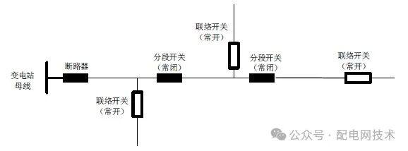 自变电站母线引出,仅配有分段开关的架空线路构成辐射式电网结构,如下图所示。