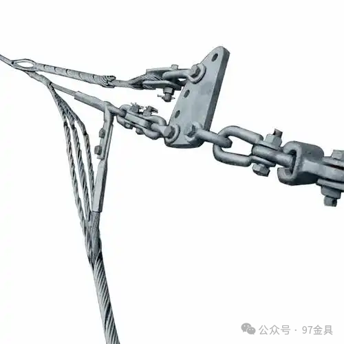 耐张线夹(预绞式):这是承力单元的执行部件。它采用预绞式结构,通过多股铝合金丝预成型螺旋缠绕在导线上,均匀握紧导线,分担部分拉力。